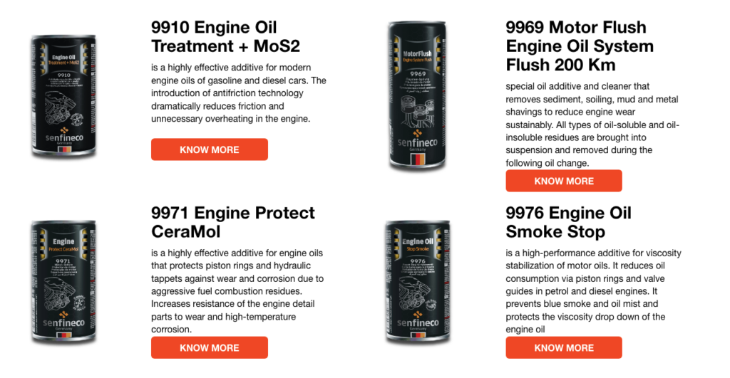 The extra power for engines, transmissions, cooling systems, fuel, etc. The tailor-made products from Senfineco provide your vehicle with the care boost appropriate to your cars needs and requirements.